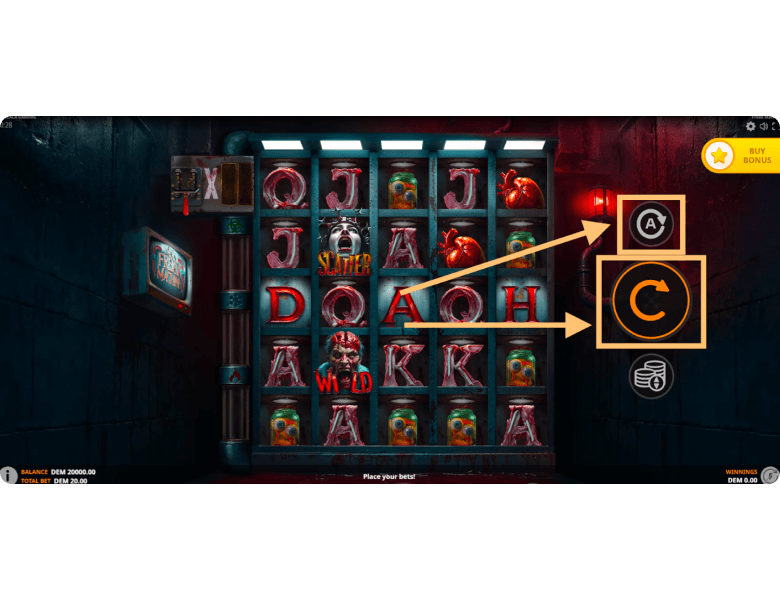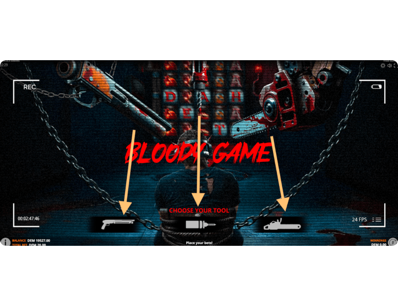 This is a unique thematic bonus in the slot machine, designed for true horror-style fans. Players must choose one of three weapons: a shotgun, a drill, or a chainsaw. The selected weapon destroys the prisoner tied to the chair in the center of the screen, allowing the participant in this bloody game to claim a random prize ranging from x2 to x36 of the total bet. Although the round’s mechanics are fairly simple overall, more sensitive players might prefer not to trigger this bonus intentionally by paying x20 the bet through the Buy Feature menu.