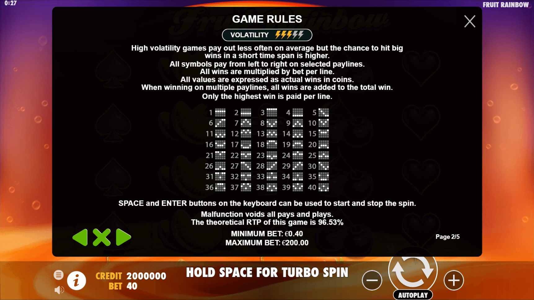 | Fruit Rainbow | 96.53% | medium | 2,000x | ||