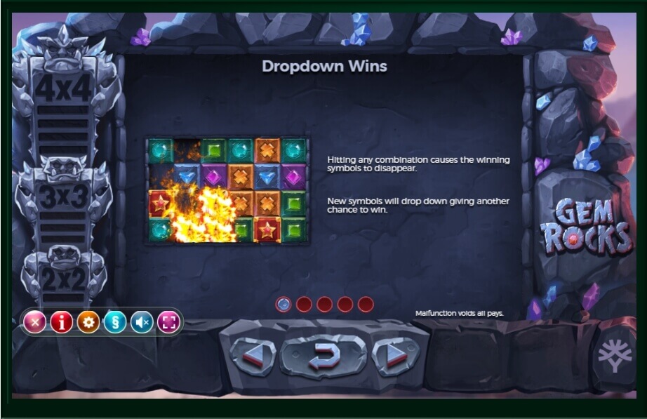 As we said earlier, 4096 payment methods are available in the video slot. After charging, the payment for the image from the chain will explode and new elements will appear in their place. This option is called “Dropdown Wins”. It continues until new options are formed. After several such events, “Monster Rock” appears on the monitor.