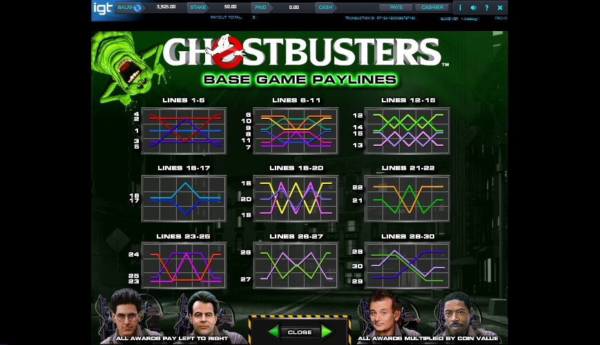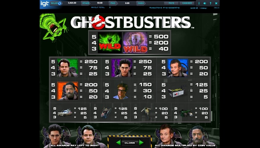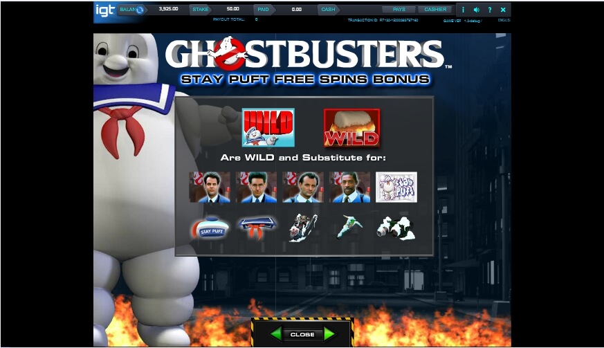 Ghostbusters is one of the last gambling masterpieces of the company IGT. Due to the slot’s name, it is clear that the game is based on the famous American film, and that’s why its main characters are Marshmallow Man, ghost hunters and the Slimer. The gameplay and the atmosphere are worthy of words of admiration. And you can win real money. When playing with the maximum line level – 30 – the bet on spin is 50 credits, but you can bet on the less number of lines – then the bet will be 20.