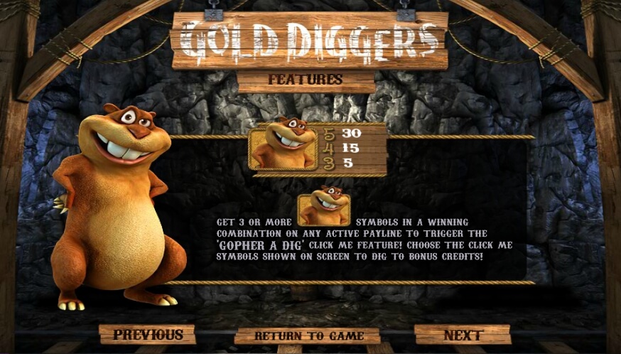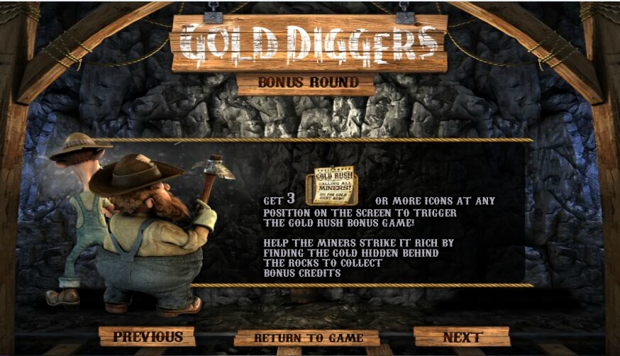 It is worth noting that in the video slot Gold Diggers all the symbols are animated, and as soon as the winning combination is dropped, the corresponding symbol immediately performs some interesting movements. This allows with great interest not only play, but even just watch the gaming process from the side. In general, there are a lot of Symbols in the game and they will not let you get bored. Symbols are all different and have different functions. Most of them were created in order to “dilute” the combination. If you drop a man in a hat with a beard, then the bonus game will be activated. In the mini-game you have an opportunity to earn 500 coins.