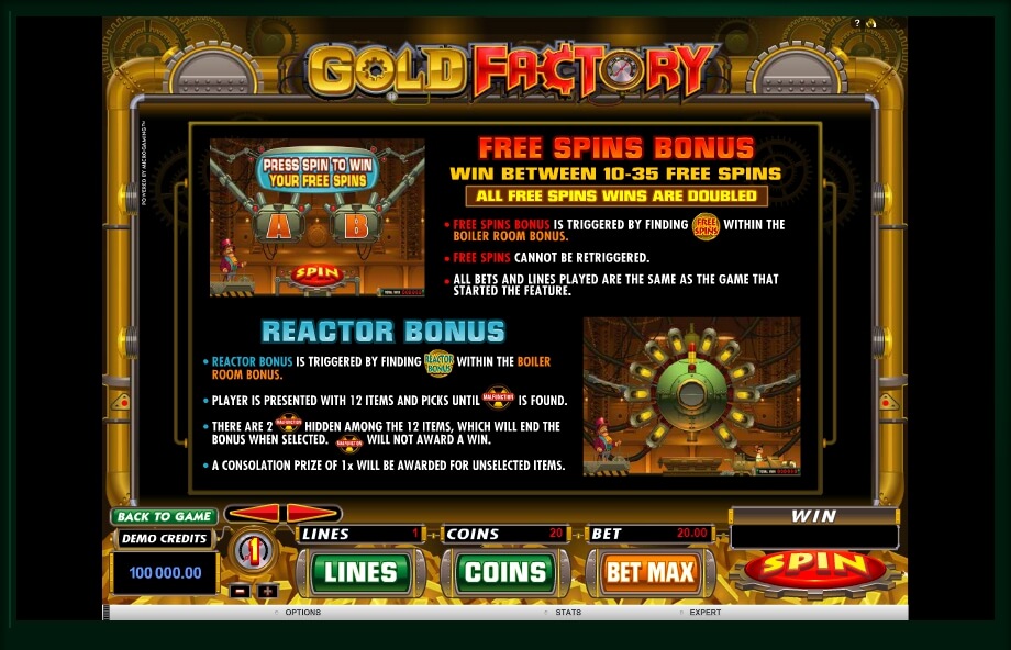 If you’re a newbie, we recommend you to play Gold Factory in free mode to study its main features at the beginning. Demo-mode is available in all casinos that are operating under the Microgaming’s partnership license.