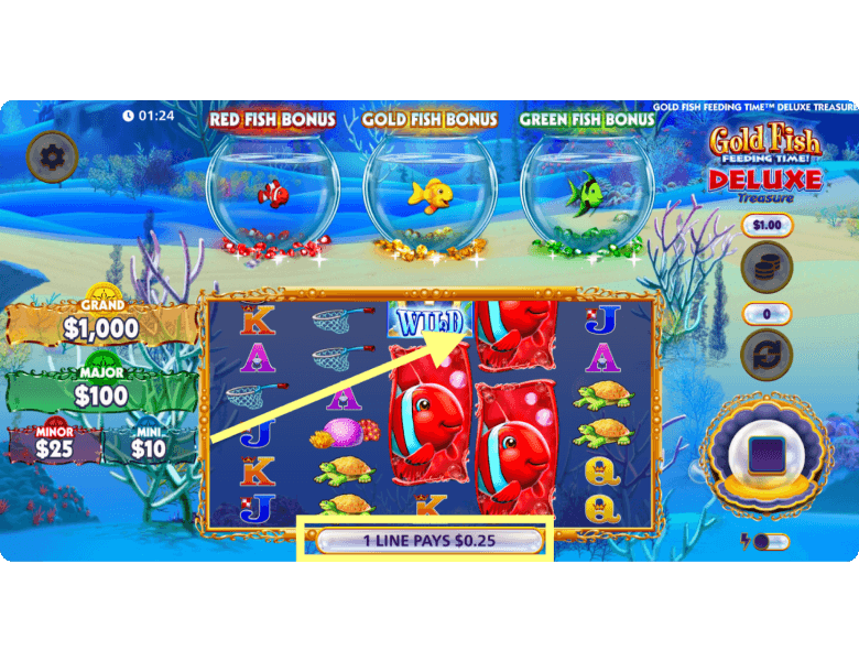Light & Wonder is known for their serious approach to bonuses, so players are in for 3 different types of super games with free spins. Each of these rounds in Gold Fish Feeding Time Treasure comes with its own unique bonuses. By playing online for fun on this page, players can personally experience them in demo mode with no risks involved.