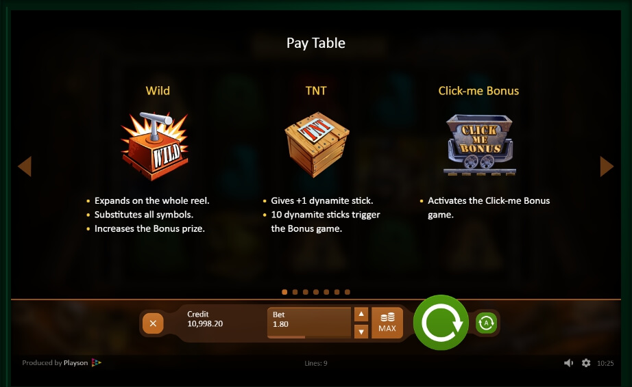 To increase the winning score, the player should collect matching slots on the paying line. In the case of landing at least three similar items, your bankroll will be doubled. However, it is more interesting to keep an eye on mining wagons and other slots with special items, especially if it is a scatter.