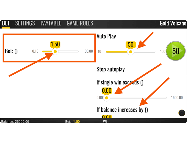 Play Gold Volcano for fun at the best online casinos, but only our site offers the game with no registration and no download. Simply click on the slot image, wait for it to load, and then follow the easy steps outlined below.