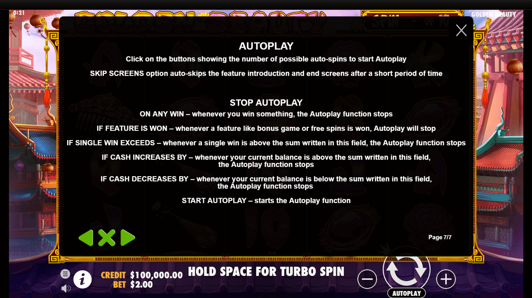 To ensure a smooth and enjoyable gaming experience, Pragmatic Play has included several convenient options. One of the most useful is the advanced Autoplay settings, especially valuable for those placing bets in an online casino environment.