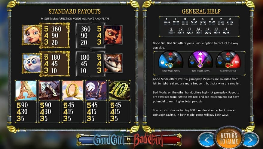 The slot machine Good Girl Bad Girl will offer all players a pleasure of spending their free time, getting a lot of positive emotions and at the same time earn good gifts in the form of cash! You can immerse yourself in the virtual world of entertainment and really relax and ease after a hard day at work. Bright and engrossing graphics, an interesting plot will not let you get bored. This game depends on the mood of a person. You can play just to have a good time, and the cash prize will be a pleasant bonus for you! Play now without registration and download.