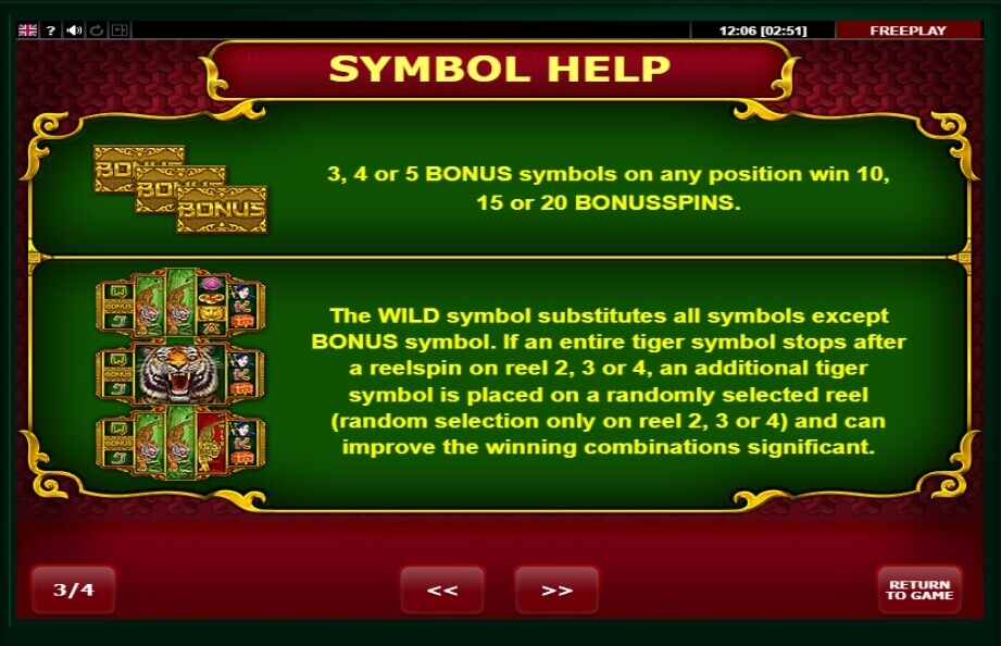 A tiger itself is a wild symbol of the video slot game. Players can find it only on the second, the third and the fourth reels. Wild appears accidentally and can replace all other playing icons with those that are needed to get a winning combination quickly.