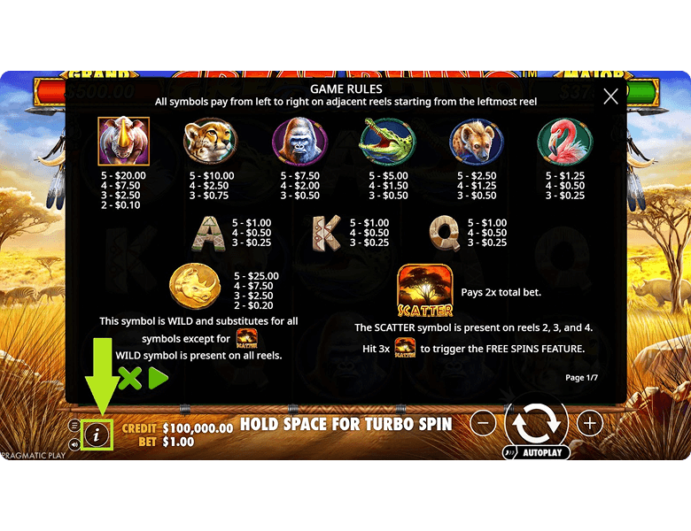 Land 3 Scatter sunset symbols, and you'll receive 10 free spins. During the bonus, all rhinos are collected on the meter. In the final spin, they return to the screen, potentially leading to long combinations.