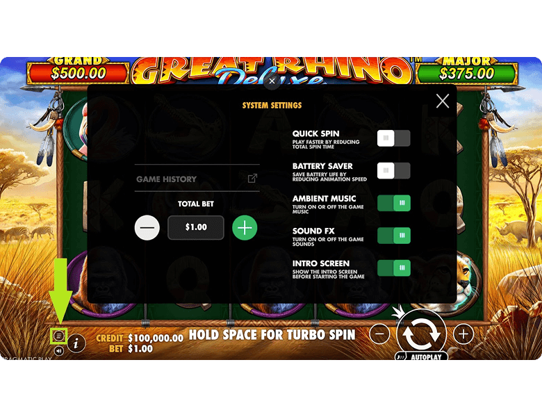 I’ve played this series from Pragmatic Play before, and I launched Great Rhino Deluxe with no download. The game loaded quickly, and none of the features felt outdated. Not bad at all for a 2020 release.