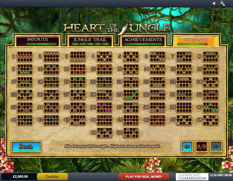 The yellow button in the lower left corner opens the text to the theoretical information. The developers put here the rules, the payout table, the coefficients and other information. A player can open this section at any time during the game process. In general, the developers have worked well on the design of this game. In the background we see a wild jungle.