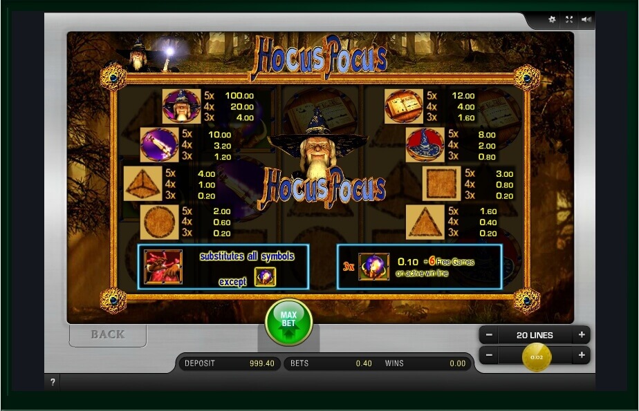 As you can see, players are awaited by amazing adventures in the world of miracles and magic. In addition, you will have a chance to get acquainted with = legendary Merlin whose life is shrouded in secrets for many centuries. Hocus Pocus was created in the best traditions of the manufacturer.