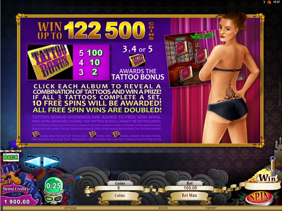 The Wild symbol is the star tattoo with the corresponding mark above it. It appears on any reel, replaces the missing symbols and can form a winning line. If you collect 5 Stars on an active line – the jackpot is yours!