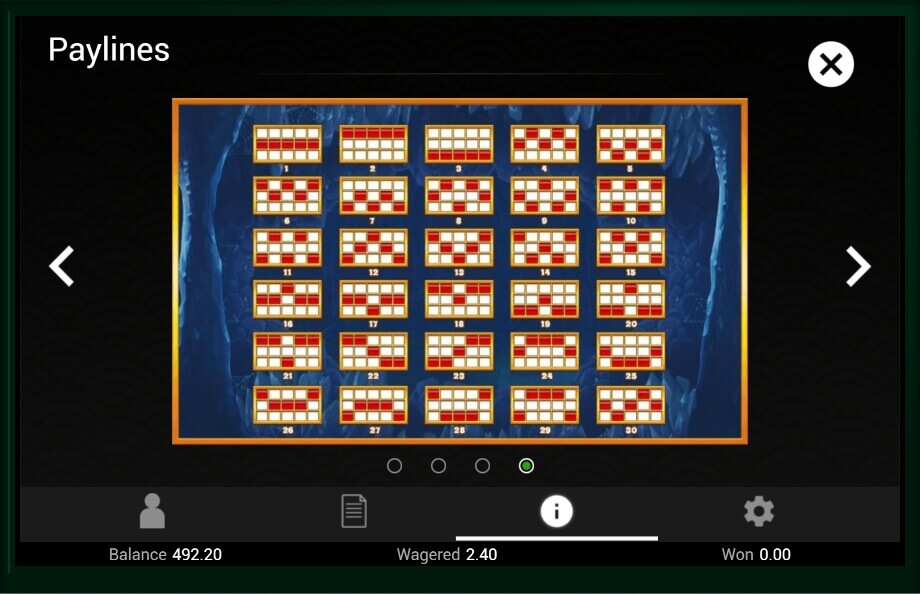 In addition, you need to pay attention to realistic animations as well as thematic characters that fully reveal the plot of the story. The developers added a soundtrack to emphasize every detail. The central part of the monitor is designed for 5 reels. On the left side, we can see a label that claims that 30 fixed lines are involved in the game.