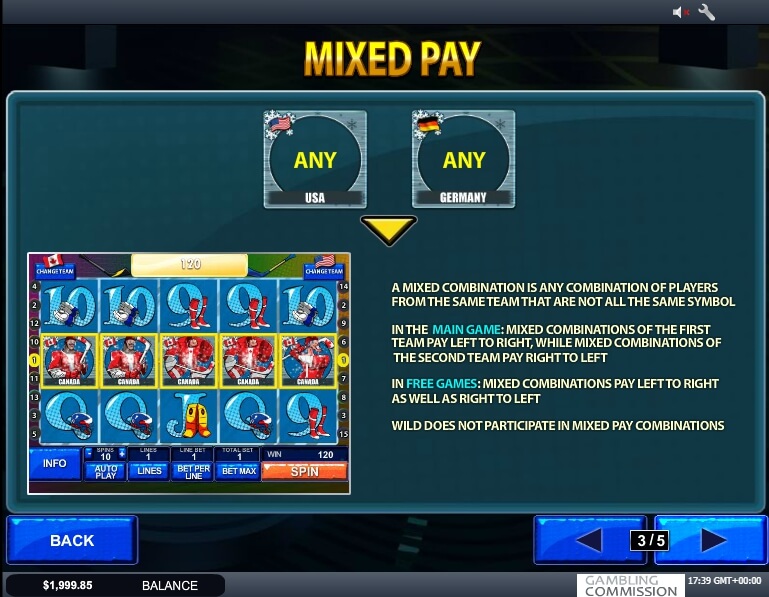 The automatic mode is activated by the “Auto Play” button. Pictures with representatives of teams can create profitable combos only in one of the directions. Each of the teams is represented by such a composition: a defender, a forward and a goalkeeper.