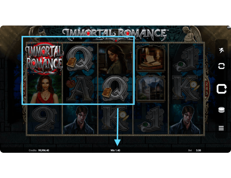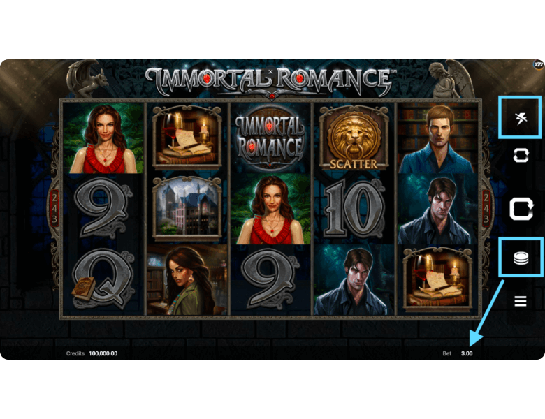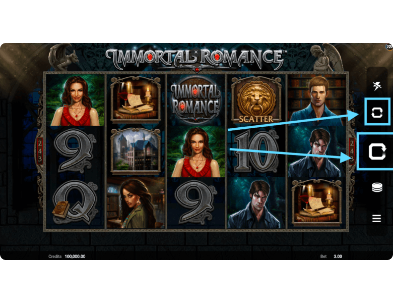 The Immortal Romance for free play version is available directly on this page — we’ve published a demo mode that requires no registration and no download. The for fun mode is also available at many online casinos, where players can additionally switch to real-money play. Regardless of the mode, the steps to start playing are essentially the same.