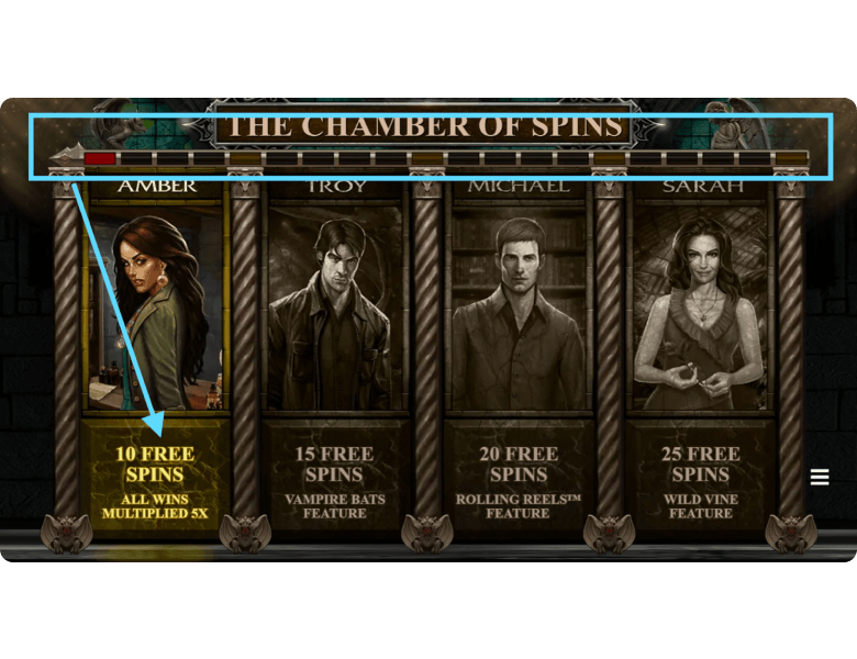 Players will clearly appreciate Microgaming’s approach to bonuses — the slot game Immortal Romance features four distinct bonus modes. Over time, players can choose which mode they’re willing to take a risk on, as each one comes with its own mechanics and advantages. Below is a detailed breakdown of each option.