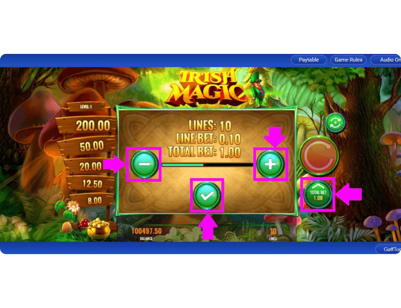 Before heading to an online casino, try Irish Magic for fun first. On this page, you can play for free, no registration required, using virtual credits.