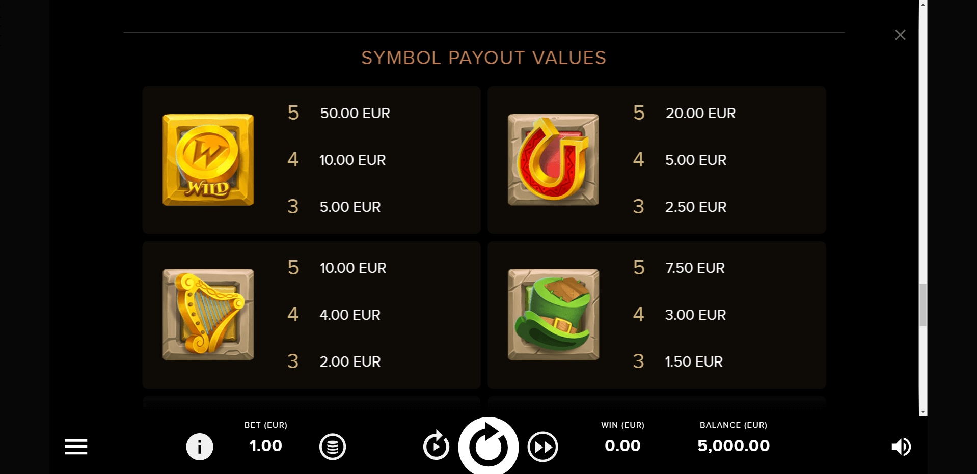 Irish Pot Luck plays clean and steady. You get 20 lines, medium volatility, and just enough random triggers to keep the base game engaging. The leprechaun randomly adds multipliers, wilds, or jackpot triggers, something I didn’t see happen much in Cash Coaster or Venice Carnival slot, where gameplay felt too flat. This one stays lively, even without heavy animations or layered mechanics.