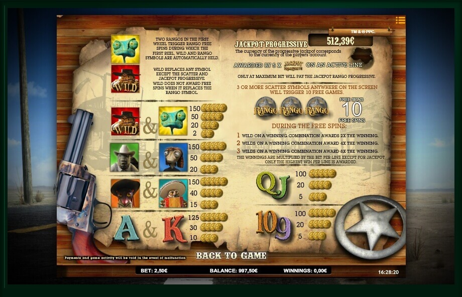 This is a unique game with the high percentage of feedback, many additional features and an excellent theme. The developers have taken the cartoon as a basis that stands out for its dynamism. The designers have succeeded due to the graphic and sound techniques. Jackpot Rango is waiting for every player.