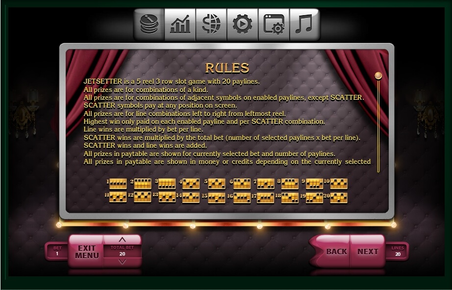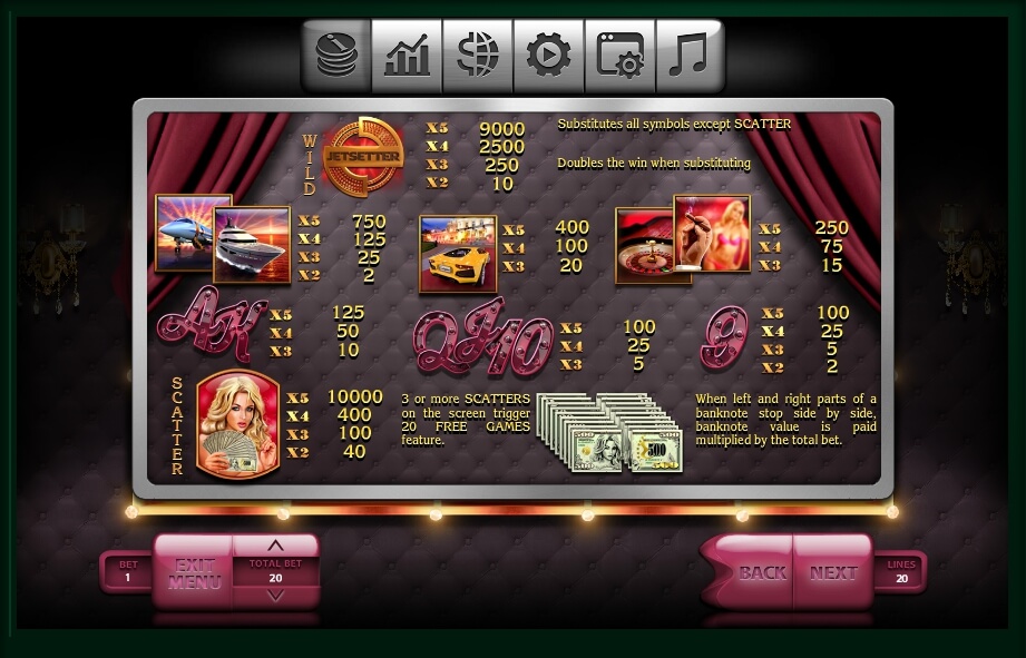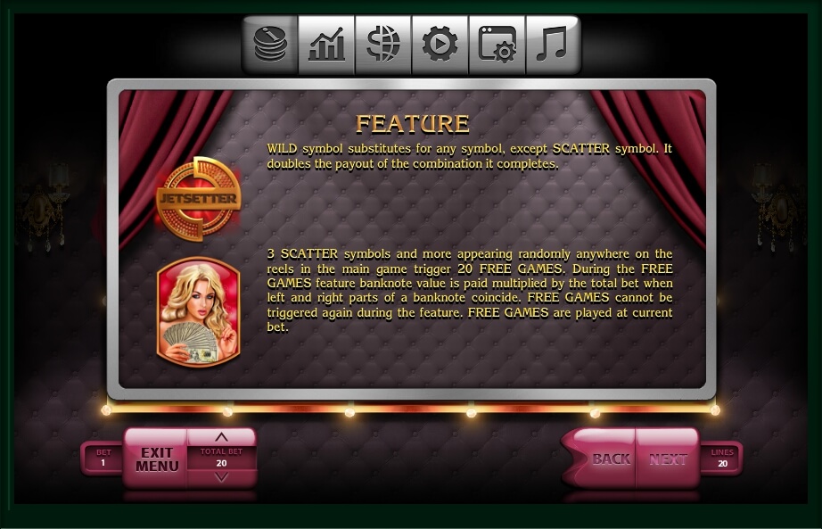 The Jetsetter slot`s gaming process itself is one of the top reasons for its popularity among players. Nevertheless, even this way you need to configure some options of your profile. To do that, use a special banner at the bottom. It contains every function of the game.