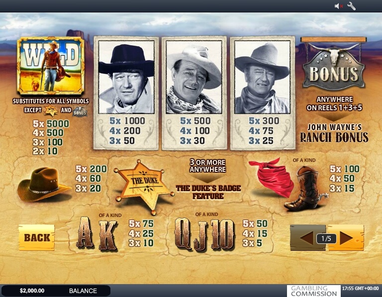 Feature symbols are also presented in the game. It can turn on a bonus round, which will be looking like a real adventure on the Wild East. Wayne will be fighting with some people and you will get your money for that fights. Are you ready to get into another adventure with this brave cowboy? Than this slot is for you. However, this is not everything Playtech can offer players. They will also be pleased to see a multiplier in the end of the gaming session. It is looking like a card game with a choice between red and black cards. If players make a right choice, their cash will be doubled automatically.
