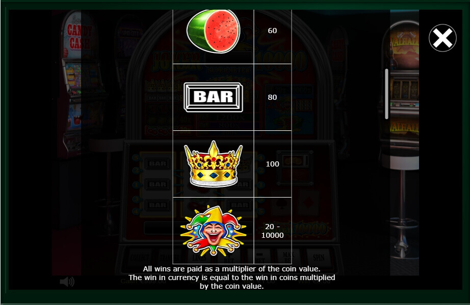 The rules are very simple: two jokers must appear on the screen. When they do, you win some random reward (from 20x to 10000x of your bet), and if 3 jokers are in game, then the jackpot is guaranteed.