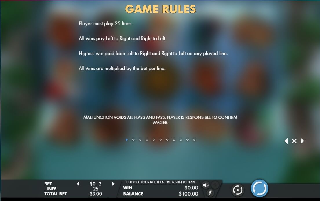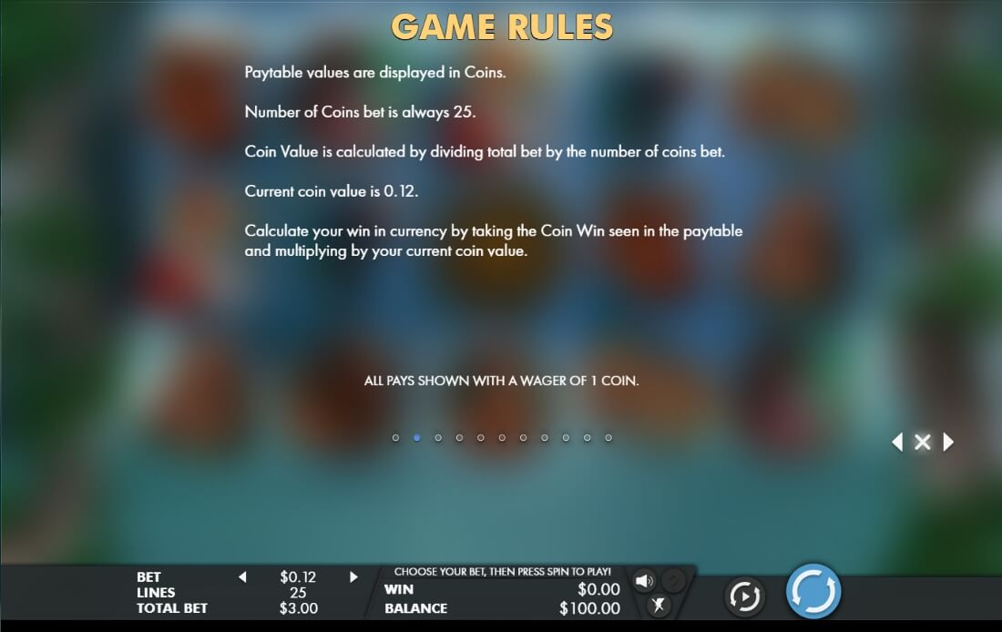 The playing panel is usual as always, all needed buttons are in the end of the panel. The player should place a bet from 0.01 to 2.00, then click Spin. There are 5 x 3 reels in the slot gambling and 25 winlines, which number we can’t change. There are no registration and no downloading, so concentrate on the gaming process and earn as much real money as possible. To get a payout the gamer should collect a combination of three or more same icons in the certain position.