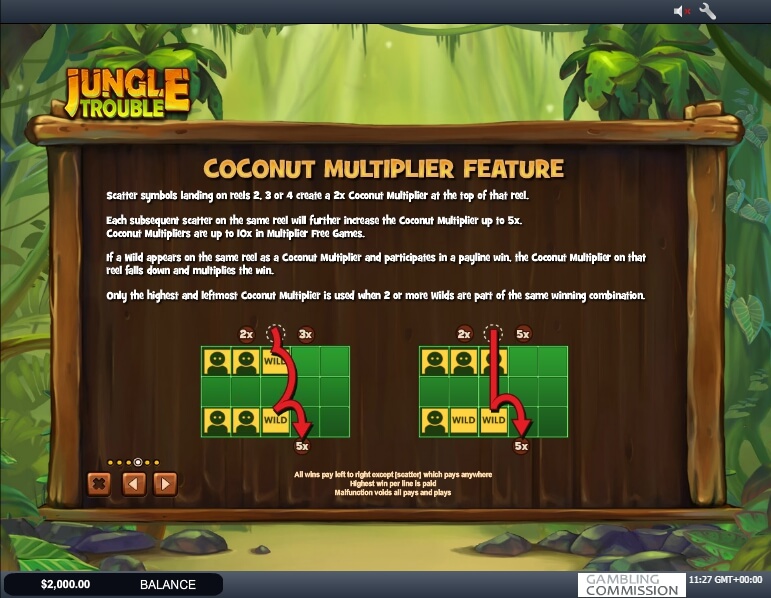 A monkey with a hat is a wild symbol. The bonus of free spins is represented by several options. Activate the bonus three scatter symbols on the second, third and fourth reels. You will get 10 free spins.