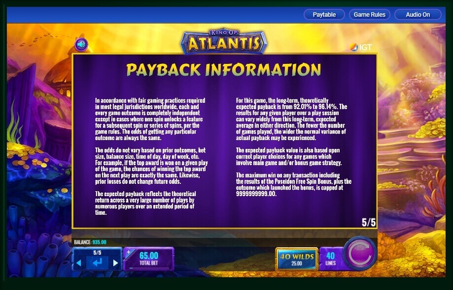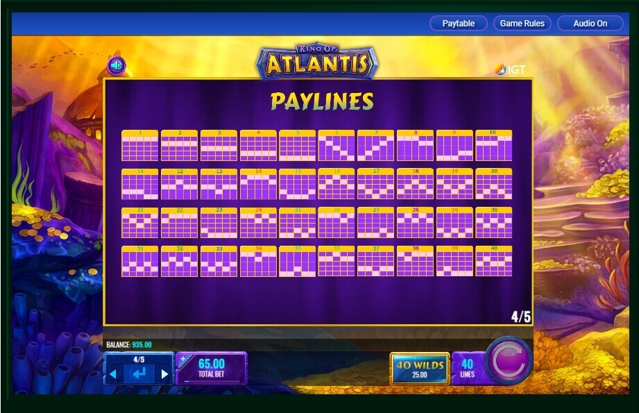 After that you will hear the sound effects and you will also see a wonderful playing field. In the background a kingdom is depicted in the rays of the sunset. Here everything is surrounded by the sea inhabitants and also golden coins. Each detail was qualitatively drawn. Against the backdrop of this crash, there are 5 drums with 40 active lines.