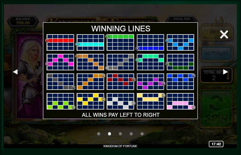 Spinning the reels with Kingdom of Fortune players can win the 250 000 jackpot. That is really the high jackpot as for the modern gambling market. Well, Inspired Software always knew how to make players interested in the game. There are 5 reels and 4 rows in the game. In total, they form a 20-spaced grid. As well as, there are 20 paylines at all.