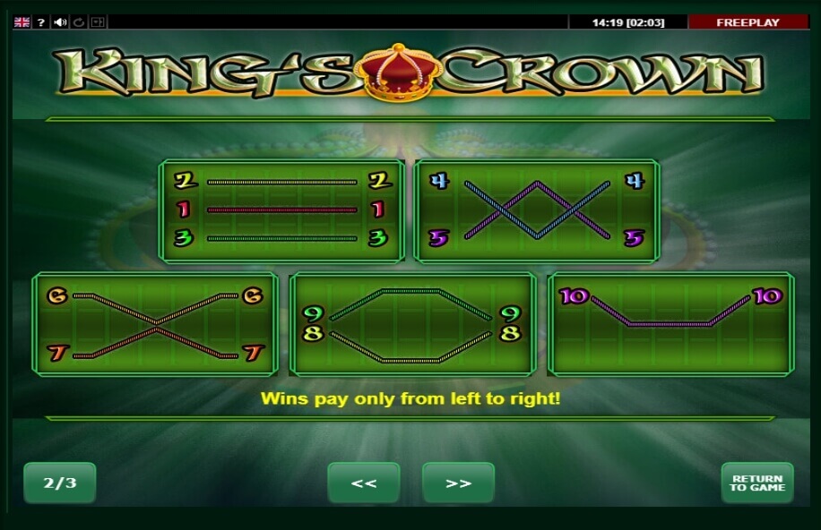 Also on the control panel, there is one more button that will be considered later. In general, King’s Crown is created in the common style of Amatic Industries. The gaming machine has high-quality 3D graphics, convenient management and sound.