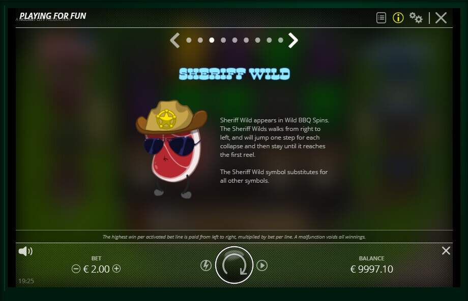 You will be able to find the wild symbol in this game – it is the Sheriff Badge Wild Star. This wild symbol will change all the symbols on the pay line to the expensive symbols and because of this fact you can earn a lot of money. You should use your lucky chance to win the prize and the Jackpot. The Jackpot consists of 100000 coins and you will be satisfied with it.