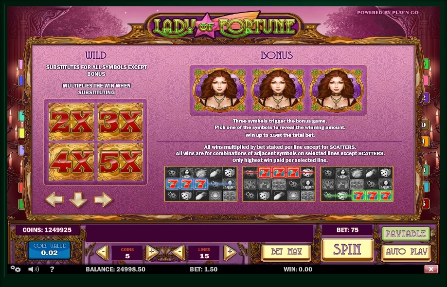 Also, Lady of Fortune offers a few special buttons that perform such functions: