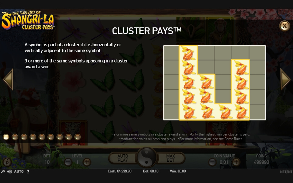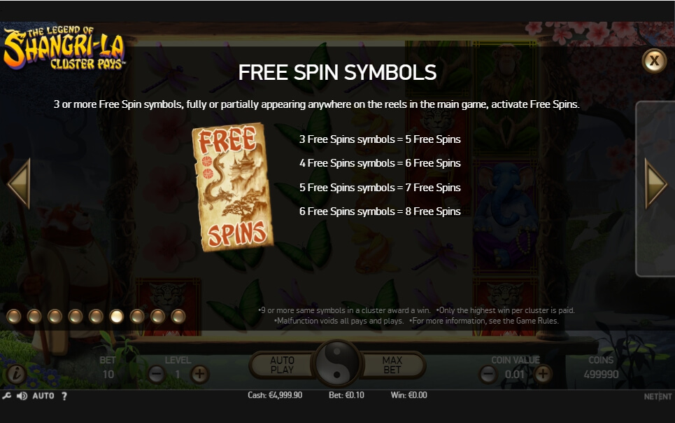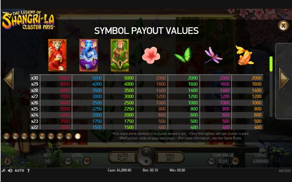 The gameplay is located below the drums and is presented with typical options. Regulators + – Level will help the player to determine the game levels, and Coine Value – with a bet. To play to the maximum, you need to use Max Bet, located to the right of the Start button, stylized as yin and yang.