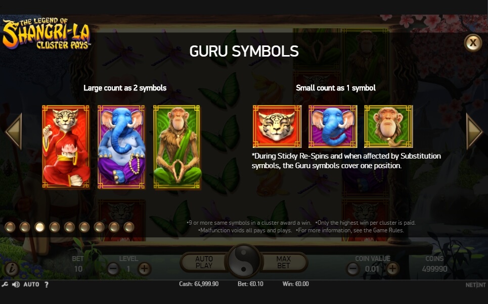 The Magic Medallion transforms into the adjacent symbol and is able to replace all pictures apart from the Scatter. The Guru image may appear stacked on all reels, but they may also cover only one position.