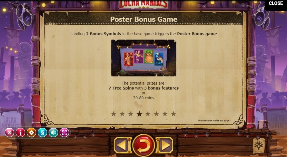 Bonus (ring) opens access to “Poster Bonus”. On the screen, there will be posters with different wrestlers. The user needs to select a portrait to find out additional options that will be in effect during the round of free spins.