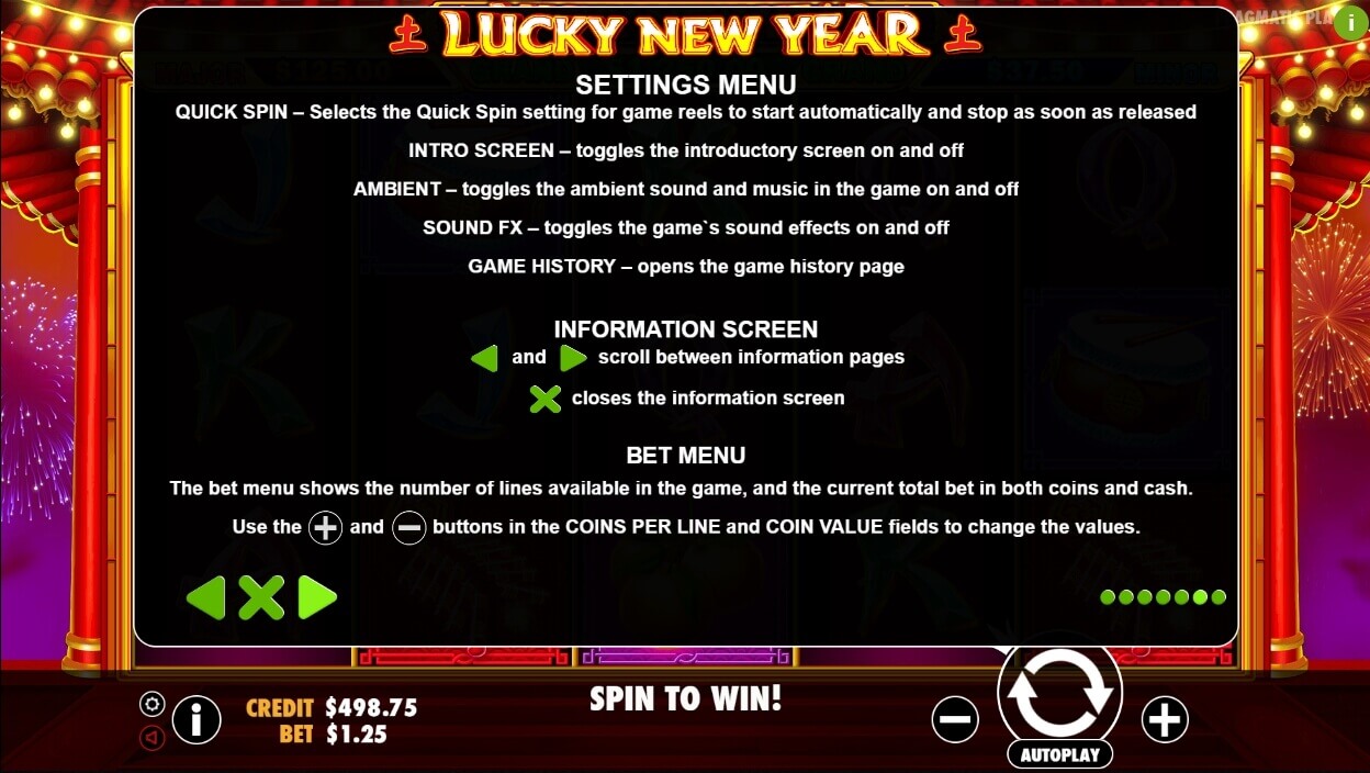 The slot is implemented on a powerful platform so the gameplay will be comfortable. Multicolored flashes, fireworks, dancing lions, talismans, and many other pleasant surprises await the player. The gaming session is complemented by animations. The upper part of the screen is decorated with garlands.