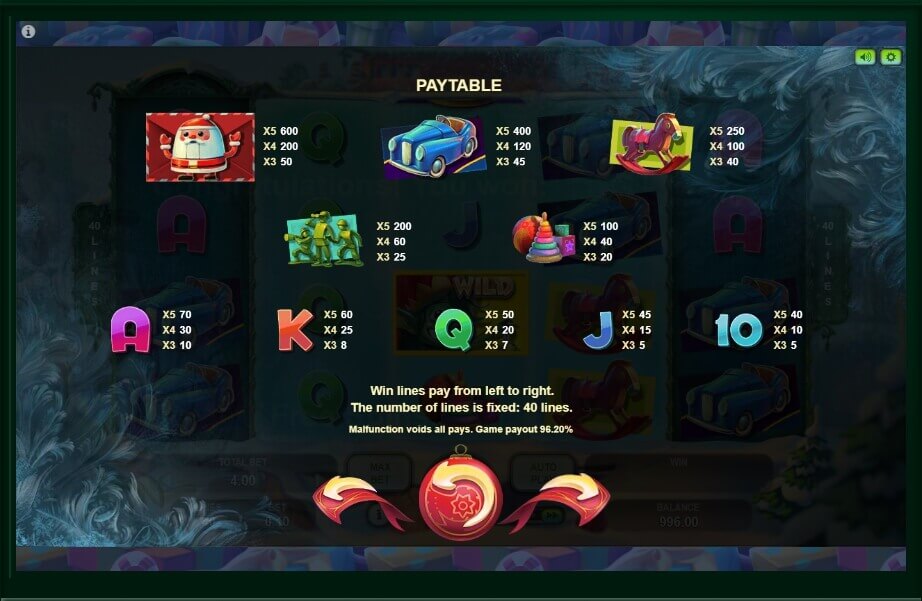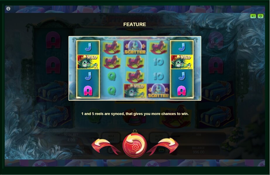 The interface here is very simple. Each guest of this exciting game will quickly understand the basic rules of the game and will be able to start an exciting game, where a lot of surprises give the start of the drums. In the game there are many different gifts for players that you can find out only by running this slot machine. But special attention deserves pictures with images of a Christmas wreath, gifts in a beautiful package, as well as snowflakes, activating bonus rounds.