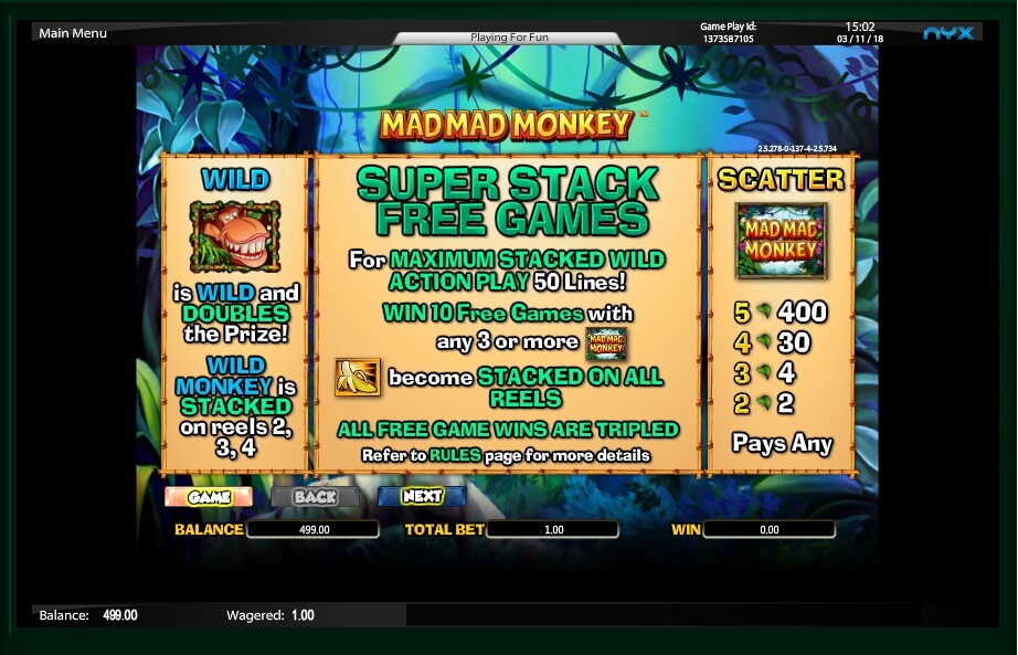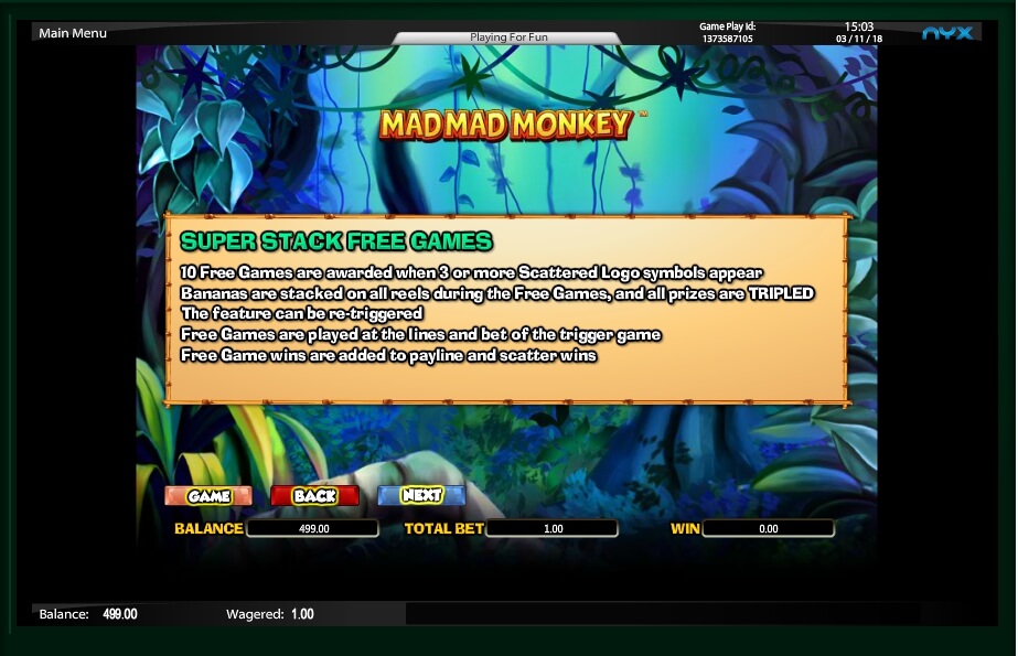 In the Mad Mad Monkey video slot there is an original bonus game, which begins after the appearance of at least three characters of the scatter on the screen. The game is called Super Stack.