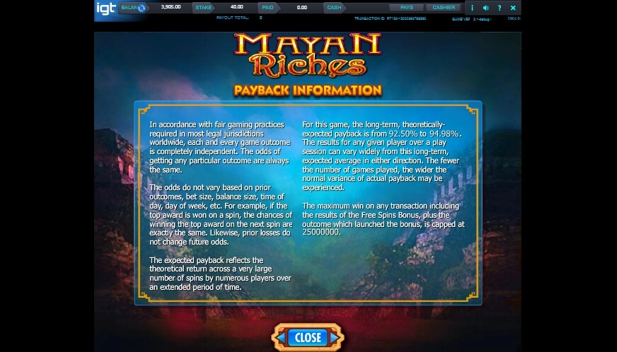 The Mayan Riches casino game has everything you need to be called good: balanced gameplay, the presence of pleasant encouragements in the form of bonuses and free spins, a lot of winning combinations and of course, generous and frequent payments. Beginners can experience their luck playing Mayan Riches in free mode without registration in a casino, provided with an IGT affiliate license, and experienced players can immediately bet on real money and hunt for top prizes.
