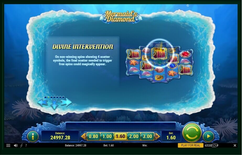 The gameplay of Mermaid’s Diamond contains basic settings with which each user is familiar. Thanks to functionality and compactness it doesn’t distract from the events on the screen, gives the chance to enjoy picturesque symbols.