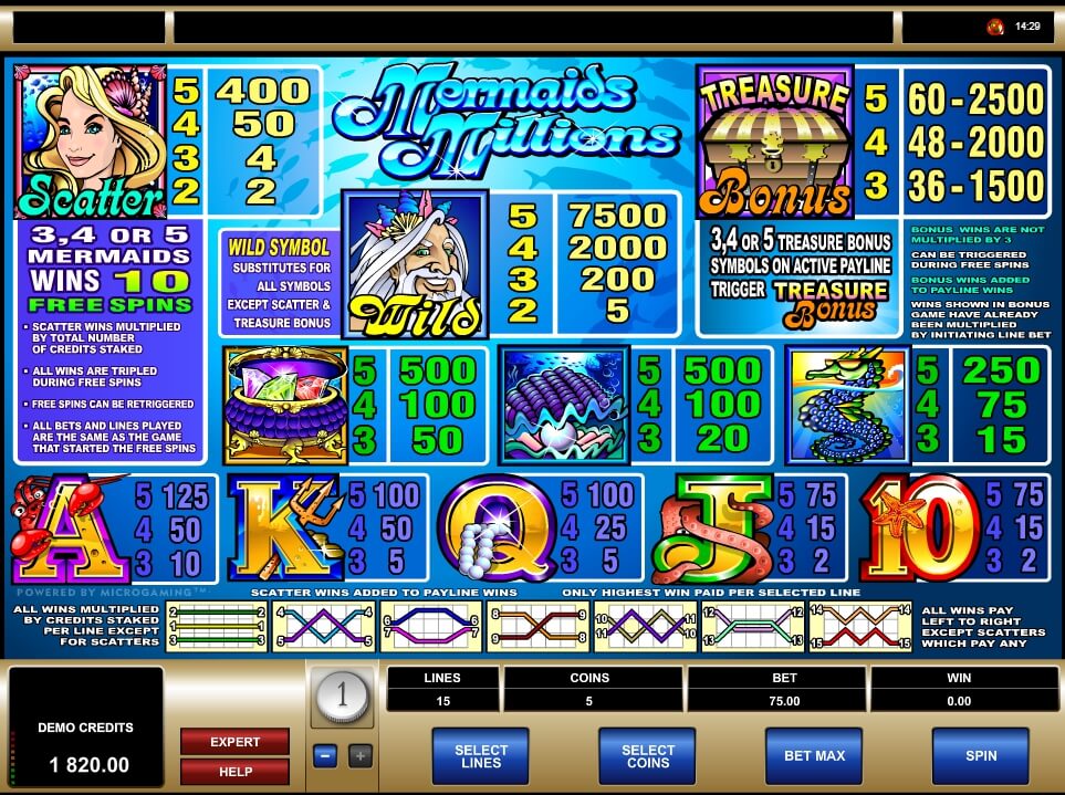 Mermaids Millions Slot Game Info & Features