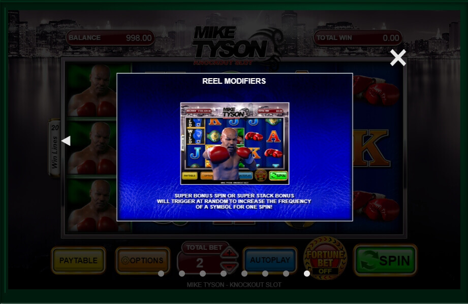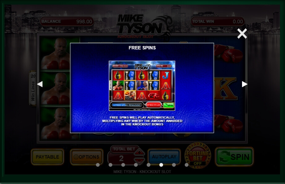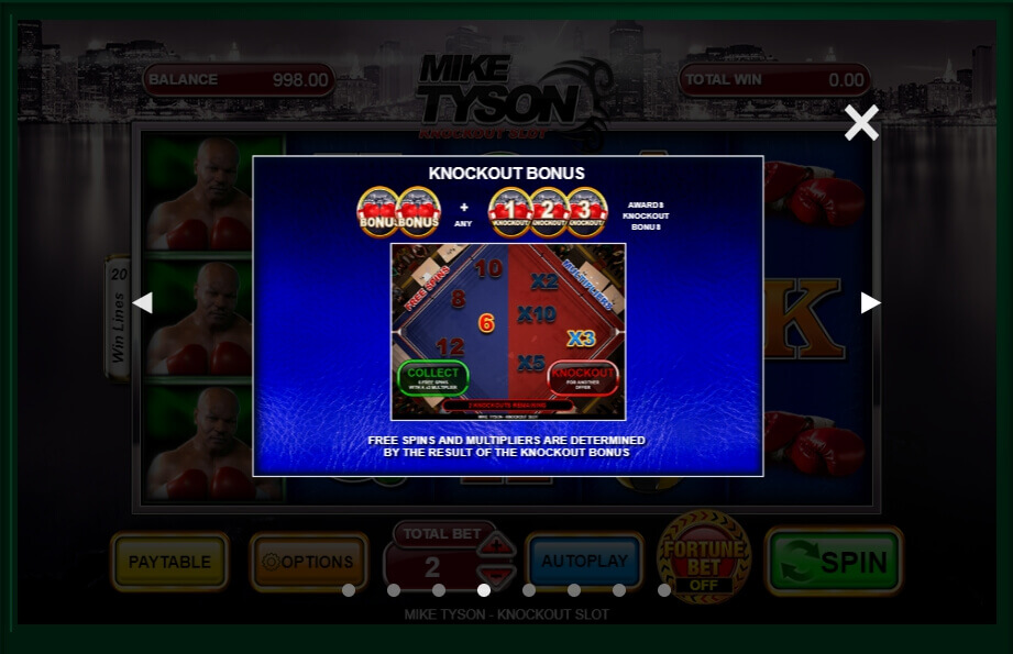 On our website, players can play the free version of the Mike Tyson Knockout video slot machine. To play the game in this mode there is no need to download it or to complete registration. Just run another round and win real money with no hard moves. Gambling can be profitable – check it out with this colorful slot game.