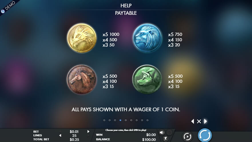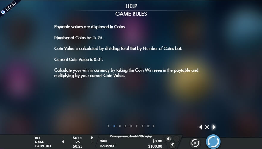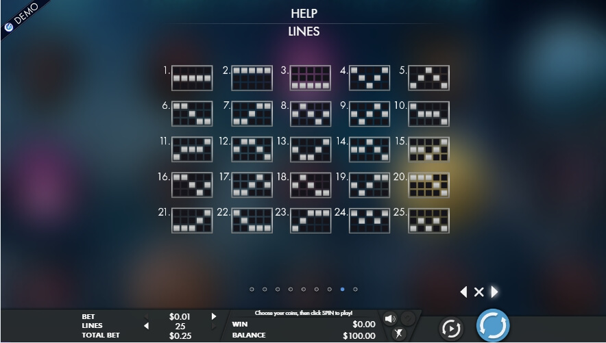 The gaming machine provides simple and clear control, but the player is still advised to familiarize himself with the main principles of functioning. So, first, the user should open the game parameters section by clicking on the corresponding button located on the left side of the game field. The first tab in this section is called help and it contains information about the rules.After reading the theory, the user should activate the next tab, called bet. In it he will have to determine the appropriate size of the bet and the number of active lines. It is also recommended for the player to use the maximum possible number of active lines during the rotation. Once all the game indicators are fixed, and the user is theoretically prepared for the game, he can start rotating the reels.It should be noted that this action is performed when one of the two possible buttons is used. The 1st one offers the player an ordinary single rotation, but the second starts the gameplay in automatic mode.