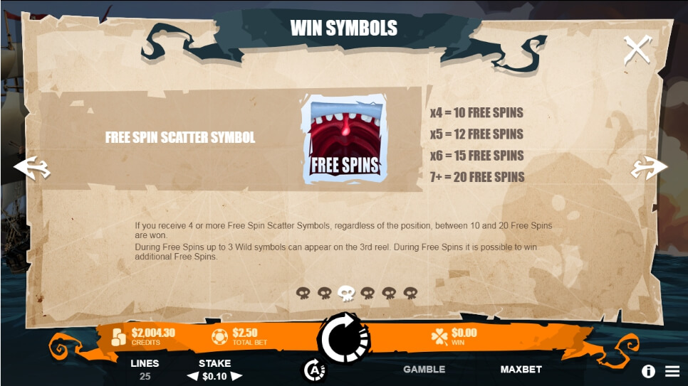 It (as usually) can replace all the regular symbols. Also, if you have ”WILD” anywhere, it will bring a win to you. The won combos will let you play ”Freezing Feature”. Land down 4 ”Whale’s jaws” and you will get ”Free Spins”. Rewards are ’10’, ’12’, ’15’ or ’20’ free spins. (It depends on how much Scatters you have.)
