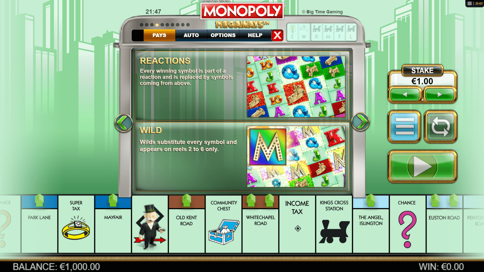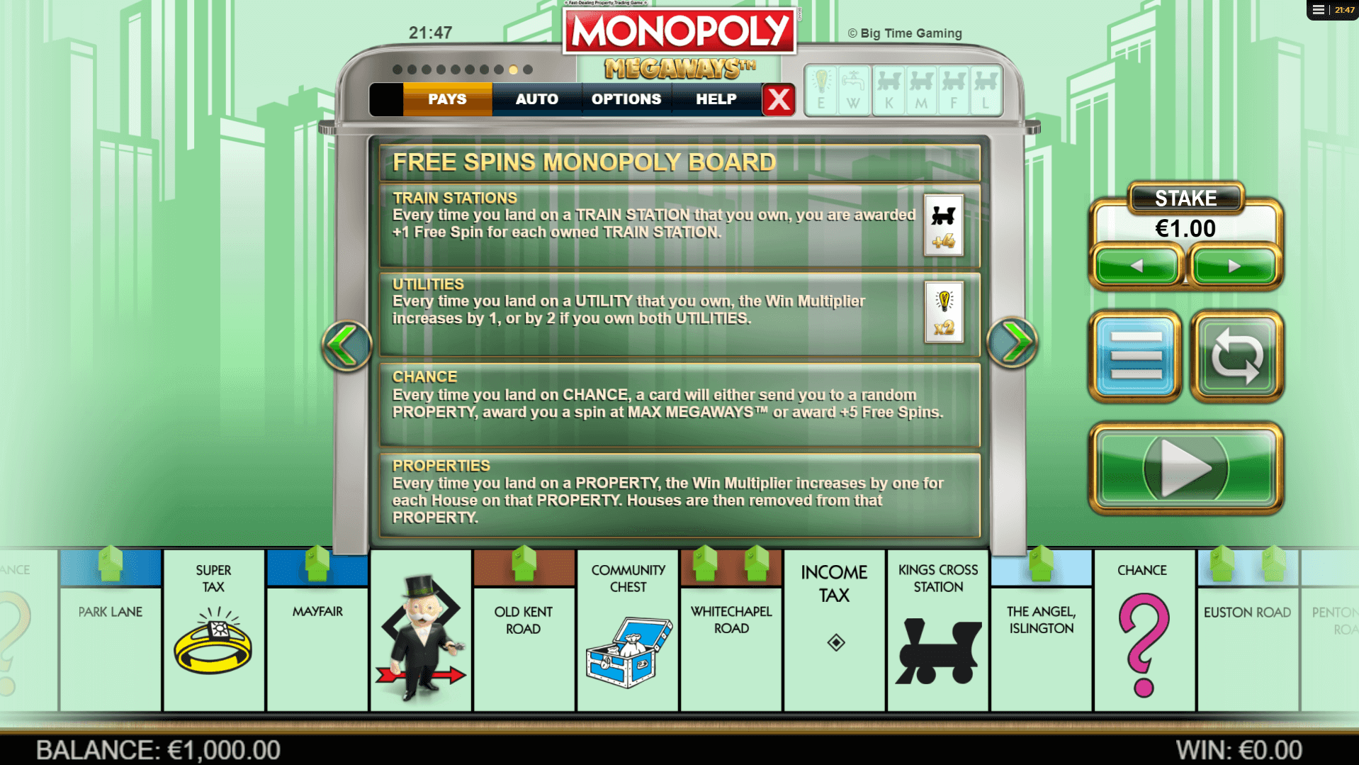 When Mr.Monopoly built a hotel, I entered the free spins round, charged with all the modifiers I had previously earned. I could also start it with a ‘Chance’ card. The round felt more easily triggered but more rewarding than what I experienced at Reactoonz, for example.