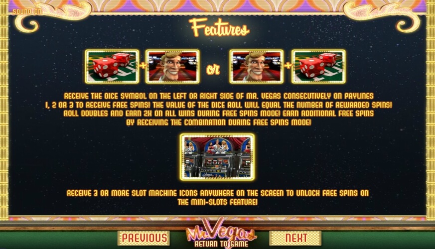 Mr. Vegas’ Features and Bonuses