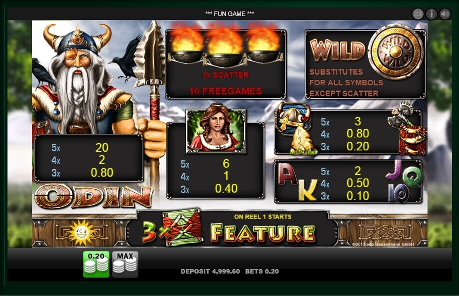 The theme of the slot machine is interesting and fascinating. The player is given an opportunity to get into the distant times of the Vikings where he or she can take all the treasures. The plot of this online game is dedicated to the main deity of Scandinavian mythology. Of course, the player will need to overcome many tests in order to get the main prize (1 million credits).