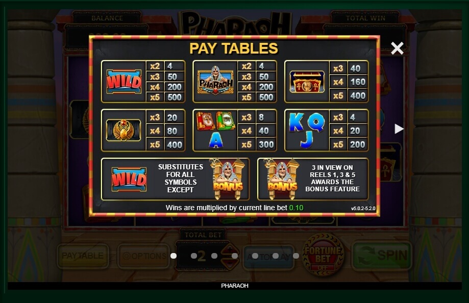 The interface of the game is made in the sandy colors. On both sides of it, players will see details from the Pharaoh’s palace. This is not just a story of the past fame of Egypt. It is just a story of one powerful kind, who just want have some fun. He will welcome you himself in the very beginning of the game with a red flag. Music in the background will help you feel yourself like you are inside of the game. So, start another round – you will like it!